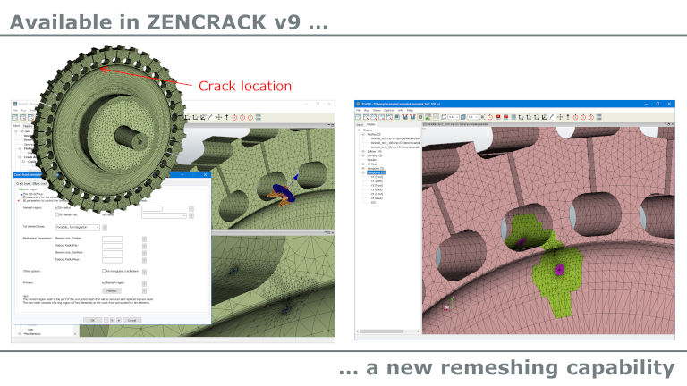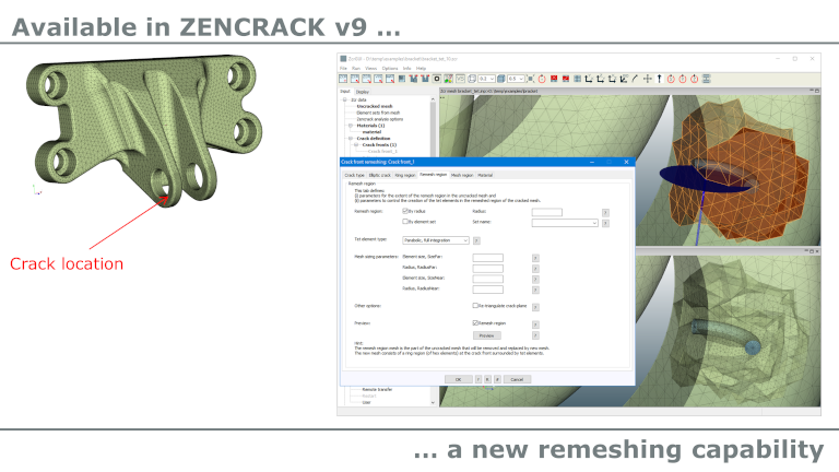 Zencrack از جمله نرم افزار های قدرتمند در زمینه شبیه سازی سه بعدی و محاسبه پارامتر های مکانیک شکست مانند سرعت آزاد انرژی و عوامل شدت تنش، با تولید خودکار مدل ترک خورده از روی مدل اصلی است. با استفاده از روش رشد ترک و تکنیک های مدل سازی تطبیقی خاص نرم افزار، کاربر قادر به پیش بینی و بررسی میزان خستگی و بار وابسته به زمان رشد ترک غیر مسطح خواهد بود.